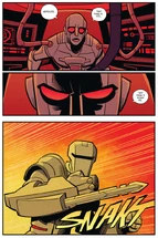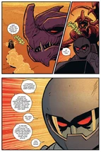 Trapped is a Toonami comic that was released, on Toonami.com, on November 27, 2016, after the final installment of The Intruder III concluded. The comic is a prequel to The Intruder III, taking place before the events of that Total Immersion Event. The plot involves TOM 5 exploring the surface of Shogo 162 and coming across another being, who gives TOM a new exoskeleton so he can defend Shogo 162 from a menacing beast.
